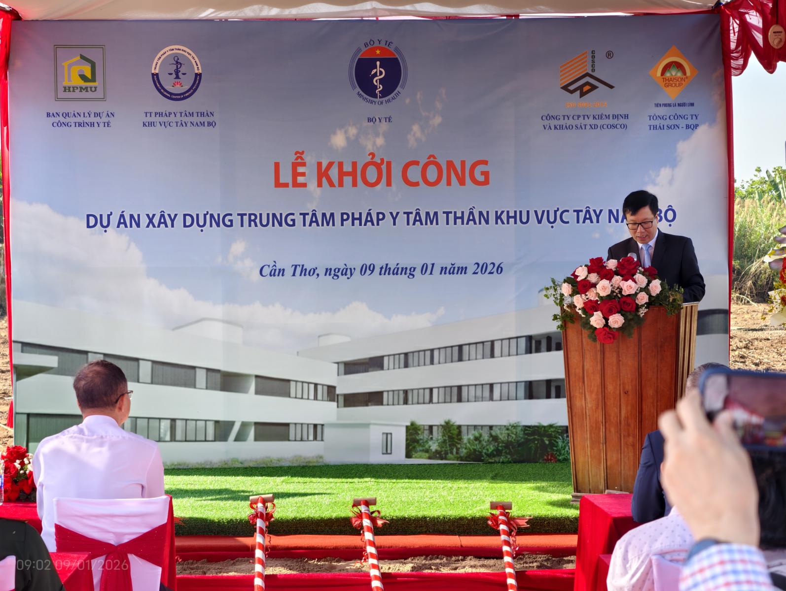 Ngày 09/01/2026, tại phường Phước Thới, thành phố Cần Thơ, Ban Quản lý dự án công trình y tế, Bộ Y tế tổ chức lễ khởi công xây dựng Dự án Trung tâm Pháp y tâm thần khu vực Tây Nam Bộ. Đây là công trình y tế chuyên ngành có ý nghĩa quan trọng, góp phần nâng cao năng lực giám định pháp y tâm thần, phục vụ yêu cầu tố tụng và chăm sóc sức khỏe tâm thần cho khu vực Tây Nam Bộ.